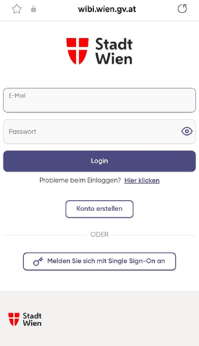 - Nach der Anmeldung ist Ihr WiBi Account über SSO mit dem Stadt-Wien Konto/ LAN-User verbunden.