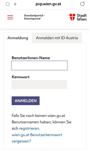- Sie werden nun zum Login in das Stadt-Wien Konto bzw. zur Anmeldung mit dem LAN-User aufgefordert.