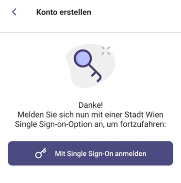 Ihr Konto ist nun registriert und über Single Sign-On mit den Logindaten Ihres Stadt-Wien Kontos verbunden.
