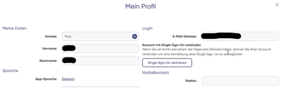 Sie können ein bestehendes FoxEducation Konto unter "Mein Profil" mit einem Single Sign-On Account verbinden.