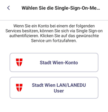 - Wählen Sie das Stadt-Wien Konto als SSO-Methode aus.