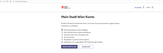 - Unter "Konto erstellen" wählen Sie "Anmeldung über das Stadt-Wien Konto".
